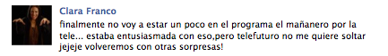 Aclarando todo tipo de dudas, Clarita dijo en Facebook que ¨Telefuturo no me quiere soltar¨.