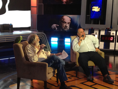 El loro ¨Recanate¨ se mantuvo tranquilo en el hombro de su dueño durante gran parte del programa y en algunos momentos dijo algunas palabras. Según cuentan una de sus favoritas es ¨Fabbro¨.
