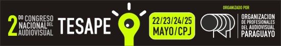El Tesape, el Congreso del Audiovisual paraguayo organizado por la Oprap, ya está a punto de comenzar. El próximo miércoles 22 de Mayo a las 20:30 está anunciada la apertura del evento en el que participarán profesionales de cine, televisión, estudiantes, técnicos y todos aquellos interesados en la industria audiovisual paraguaya.