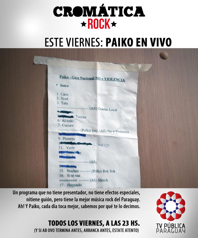 Cromática Rock se emite todos los viernes a las 23hs. por Tv Pública Paraguay.