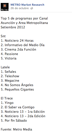 En la misma publicación de Ibope pudimos ver que en Setiembre Por Fin Sábado figura en el ranking de lo más visto. Sin embargo El Conejo no figura en dicho listado, aunque sí está entre los preferidos por la gente según Metro. El que también se mantuvo firme en el ranking durante todo el año, según ambas medidoras, es El Saber Va Contigo.