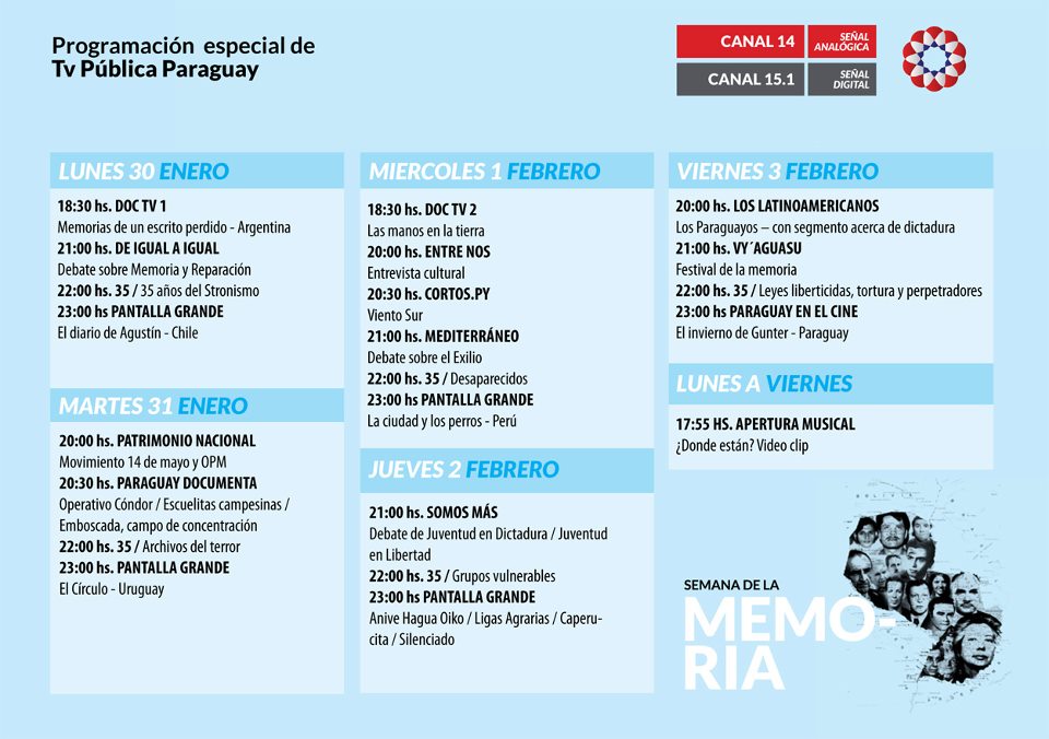 Con películas, documentales y programas periodísticos, la emisora dará espacio a una programación temática que girará en torno a la memoria y la dictadura a 23 años del golpe que dio fin al gobierno de Alfredo Stroessner.